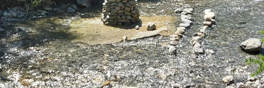 - cairn déviant l’eau au milieu du torrent des eaux chaudes, reproduisant le système de déviation de l’eau de la rivière vers les canaux.